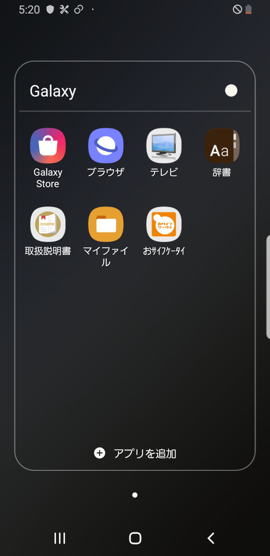キャリアアプリはスルーするとしても、それ以外のプリインストールアプリもやや多いです。ChromeとGalaxy独自ブラウザーが両方プリインストールされていて喜ぶ人はいるのでしょうか。Galaxy Membersなんかもオタク以外見向きもしないと思うので、もうちょっとスリムアップしたほうが良いと思います。