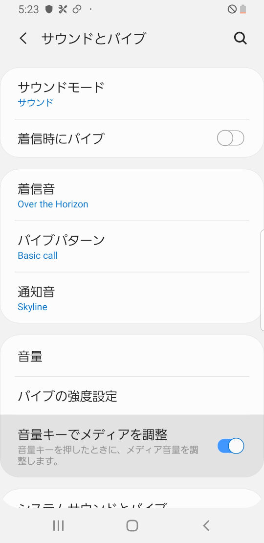 - 音量ボタンを押した時に着信音とメディア音のどちらを変更するか設定できる