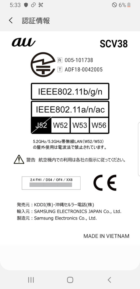 | 機種名 (型番) | Galaxy S9 (SCV38 / SM-G960J) |