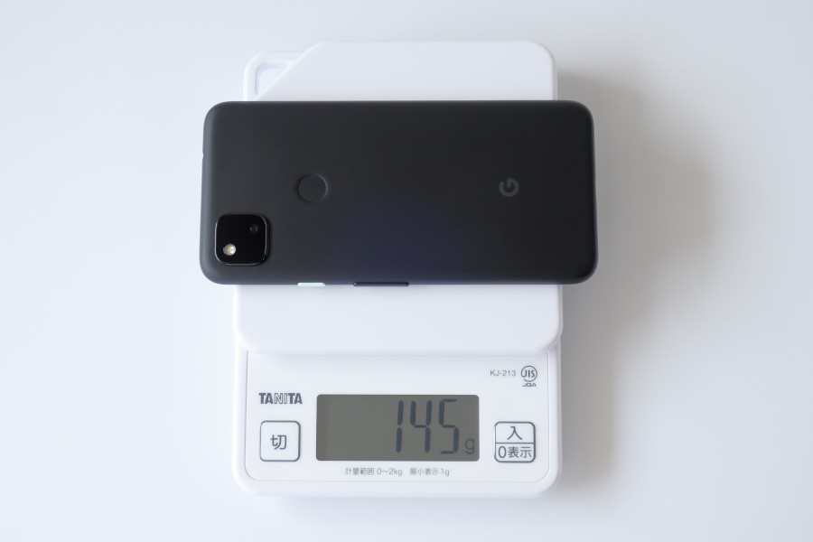 しかしただ安っぽいだけでメリットが無いのかというと、そんなことはありません。Pixel 4aは実測145gという重量を実現しており、200gを超えるものも珍しくない現在のスマートフォン市場ではかなり軽量な部類となっています。また、ポリカーボネートはガラスのように割れることがないため、落としても壊れにくいとメリットもあります。