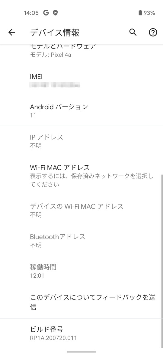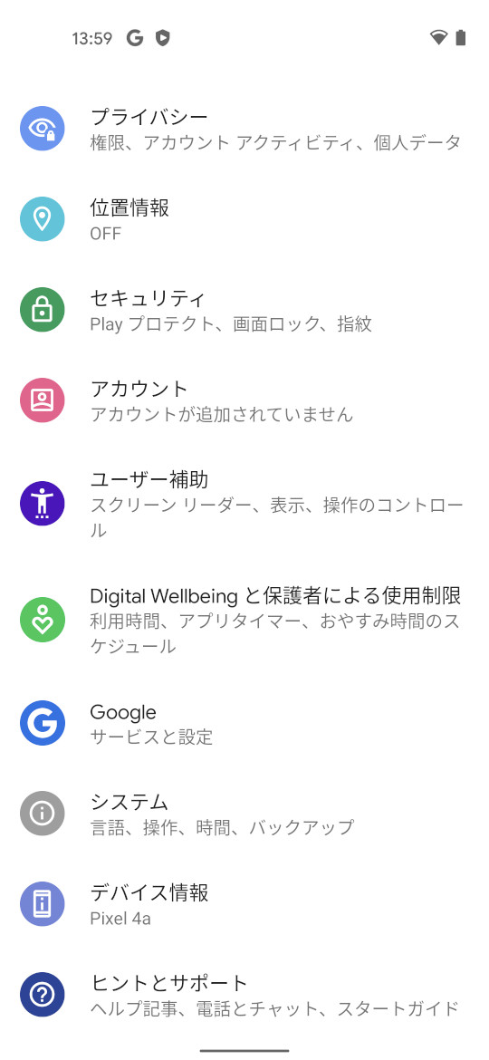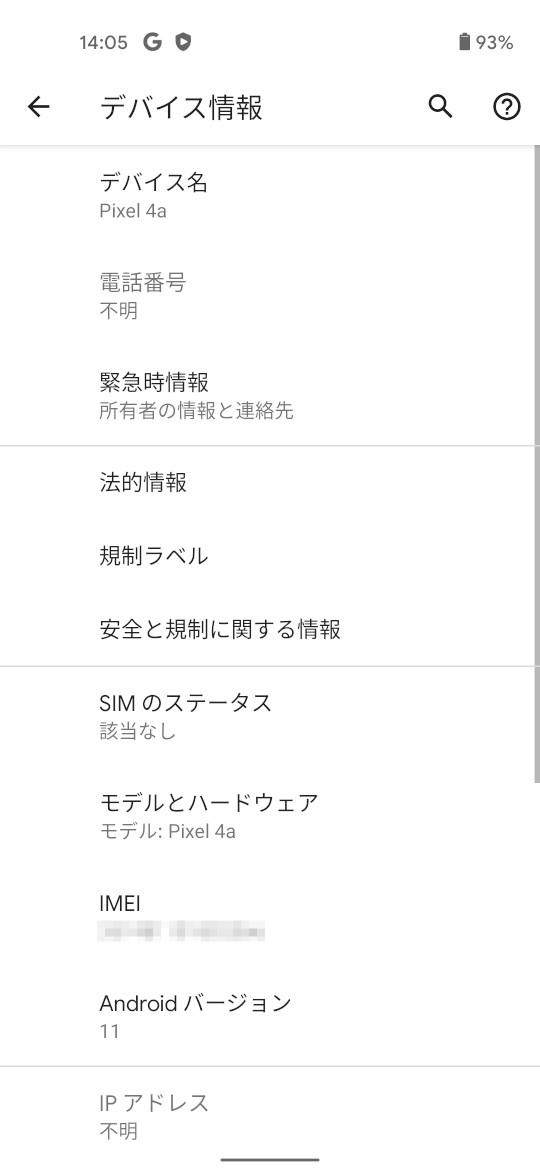 機種名 (型番)Pixel 4a (G025M)