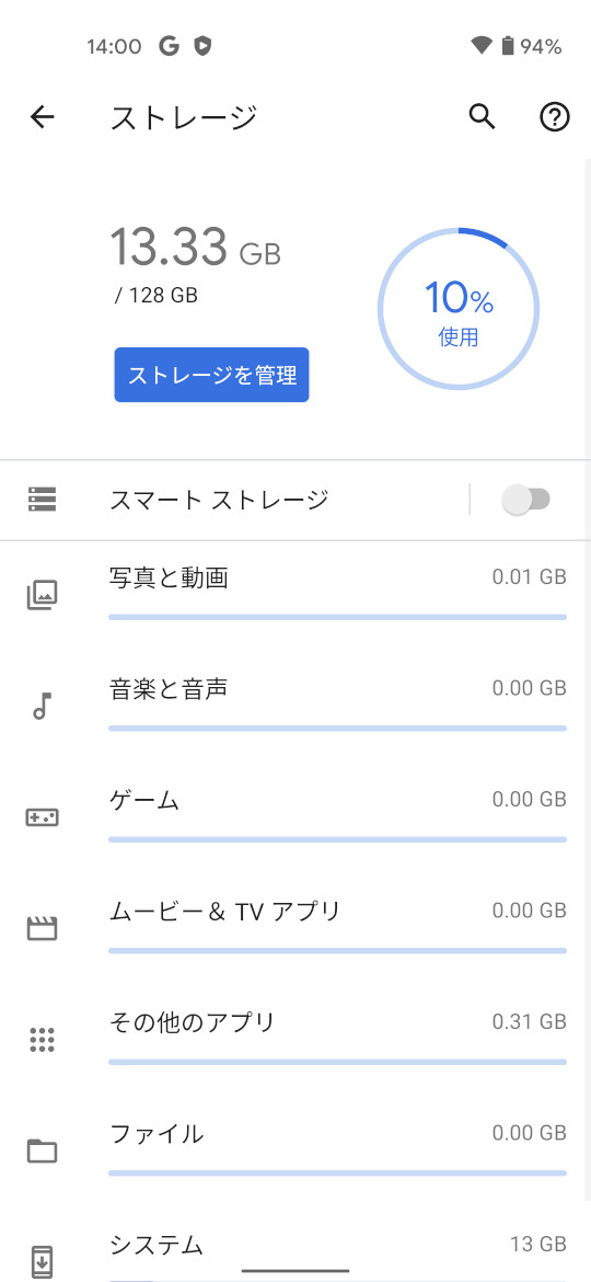 ストレージ128 GB (UFS 2.1)