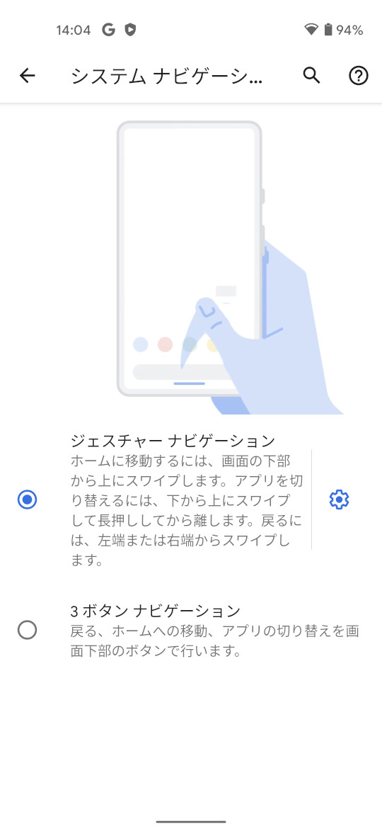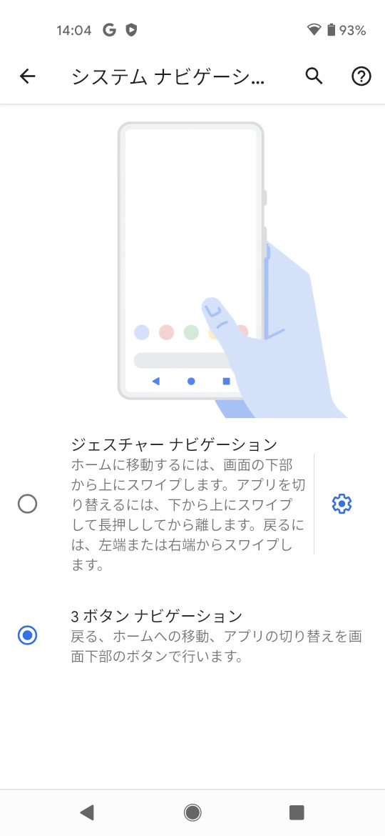 唯一「Pixel 4aに機種変更した人が戸惑いそうだなー」と思ったのがジェスチャー操作です。iOSの後追いでAndroidも9.0 Pieからジェスチャー操作が導入されましたが、Pixel 4aは初期状態でジェスチャー操作が設定されています。ジェスチャー操作と従来の3ボタン操作、どちらでも好きな方を使えばいいと思いますが、もしジェスチャー操作から3ボタン操作に戻したい場合は「設定アプリ → システム → ジェスチャー」から3ボタン操作に設定することができます。