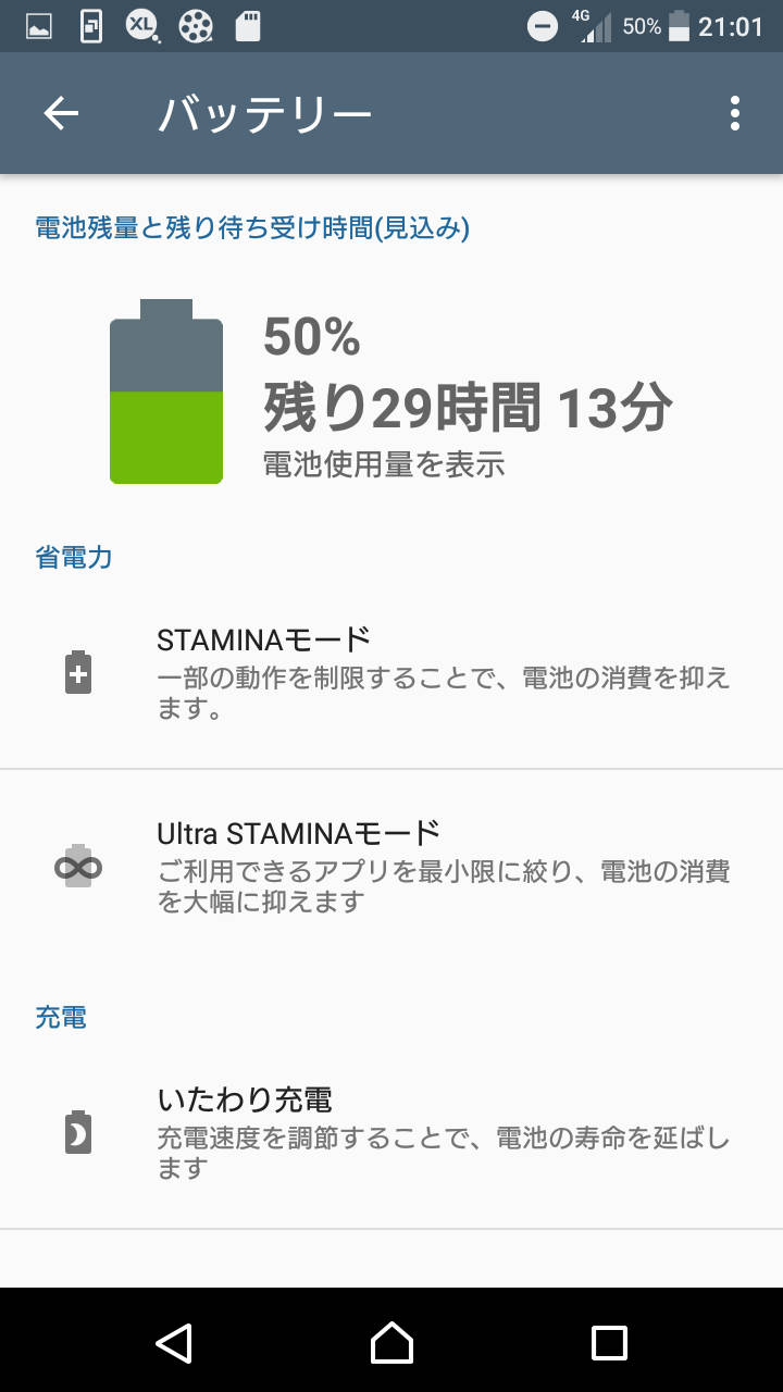 Compactの名にふさわしい電池持ちの良さを発揮しています。特に待ち受け時や、ネットサーフィン・SNS等の軽い動作を行っている場合の電池消費が少ないように感じました。
