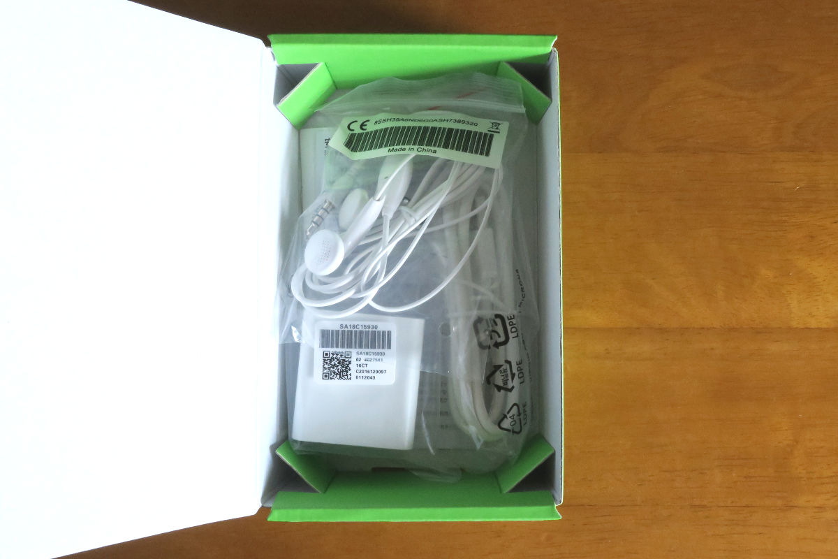 鮮やかなライトグリーンが目を引くパッケージです。(スマホのパッケージが店頭に並ぶことはほとんどありませんが……)